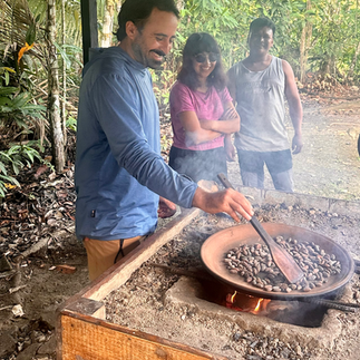 An early start with some more exploration of the river to find even more animals. We then motored up the river to a walk in pristine rainforest. It was supposed to be about 1.5 hours but 4 hours later we emerged having been soaked by rain, nearly drowned in creek crossings, and having our guide teach us about the animals and plants found in the area. There were quite a few bullet ants. The bullet ant's sting is considered one of the most painful in the world, with victims often describing it as feeling like being shot with a bullet. The pain can last for up to 24 hours, and some victims experience muscle paralysis and hallucinations. The walk was a fantastic experience. Although we never saw it, we did manage to find some pretty fresh jaguar prints in the soft mud. Thoroughly drenched and muddy we then took another swim in the lake before heading back to the lodge for a well earned rest. Later that evening we learn't how to make chocolate from the cocoa beans we had seen yesterday in the village. That night Alice played with a tarantula.....