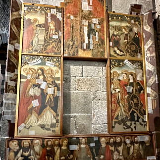 After spending a week in Alghero it is definitely time to move on. The last few days have been spent - waking up late, going for a walk and maybe a swim for a few hours, lunch (generally focaccia with some sort of meat and cheese), siesta during the afternoon, apéritif at 6, dinner at 7 then a Netflix or Clarkson's Farm then bed. So as much as I enjoyed the routine it was time to explore more of this amazing island. So today I made my way to Castelsardo, or more accurately to a little village west called Lu Bagnu. But on the way I detoured to the Church of the Holy Trinity which is a 12th century basilica located south east of Sassari. It is built on top of the ruins of an ancient monastery. The church was completed in 1116. What makes it interesting is that it is made of local stone with alternating layers of black basalt and white limestone. Inside there are some elaborate Romanesque frescoes.