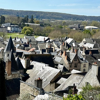 Easter Sunday today and no post yesterday because I did nothing. Well, I did walk to the fresh markets to get some food for dinner (about 14K steps). The French love to line up. First you order what you want (after being in a line), then you line up again to pay. If you try to jump the queue the person serving just ignores you. Had just about covered every street in Tours - so was glad to leave this morning, once I managed to get out of the tiny garage with about 25 turns. Continuing my drive through the Loire valley and this morning went to the Chateau d'Usse which has a real fairytale appearance. It is believed that Perrault wrote his famous story, “Sleeping Beauty” based on Usse. The Chateau’s battlement tower is surrounded with glassed-in rooms showing wax figures in scenes from the "The sleeping beauty". It was pretty ordinary, but the Chateau is so photogenic. ( I did manage to get a photo of Sleeping beauty walking up the stairs when she woke up after 100 years!). Drove on then to Chinon which is a medieval town with charming houses made of tuffeau stone or sometimes half-timbered for the oldest ones. Chinon castle overlooks the whole city, but its just a wreck today.